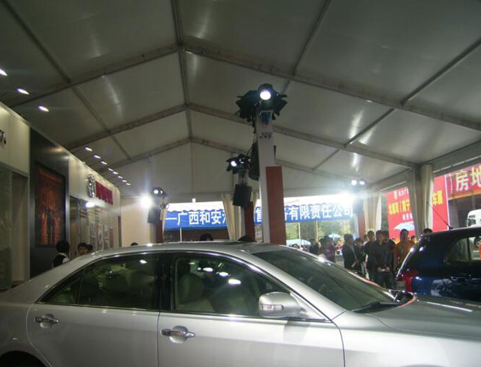 展覽篷房采用高強(qiáng)度鋁合金框架,雙面PVC涂層篷布,蓬內(nèi)無(wú)任-何支柱。蓬內(nèi)使用容量寬廣,大型篷房有10米到50米多種跨度,單元長(zhǎng)度有3米、5米兩種,并且有多種高度可供客戶(hù)選擇。
