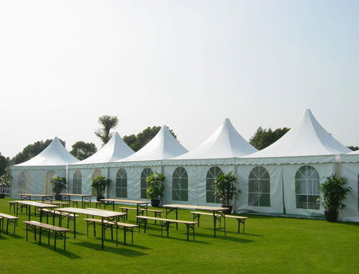 尖頂篷房設(shè)計(jì)精巧、外觀(guān)典雅、靈活性強(qiáng),主要用于商場(chǎng)商品促銷(xiāo)、貴賓休息室、接待室、公園旅游度假區(qū)等長(zhǎng)期或臨時(shí)使用的設(shè)施